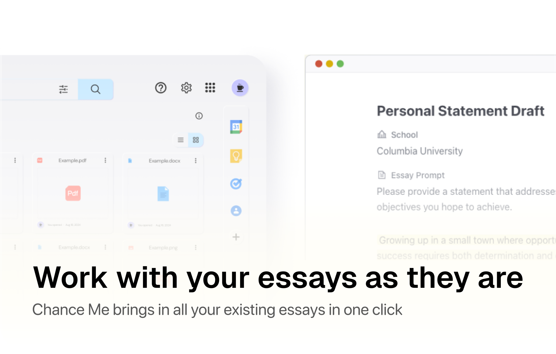 Never lose your work. All your drafts are automatically saved, so you can pick up where you left off and iterate on your essays with confidence.